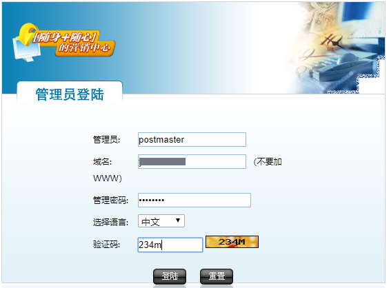 管理员填写postmaster,域名填写邮局域名,管理密码在leyu乐鱼全站官网登录详情页面中查看。