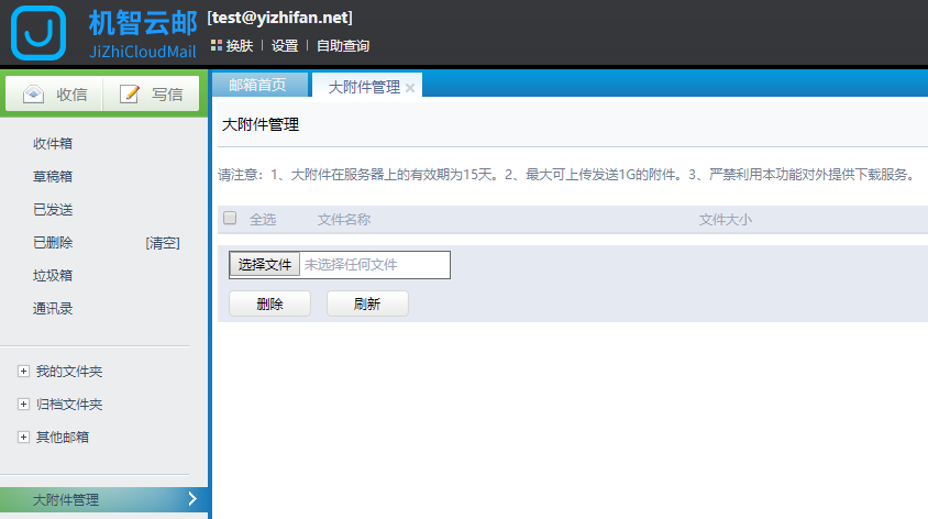 大附件功能适用于需要上传超过20M以上附件的情况,最大可上传1G的附件。大附件在服务器上的有效期为15天,15天后会自动删除。使用大附件的操作步骤如下。