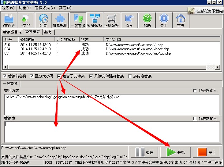 点击开始即可执行替换,以下是替换成功与否的结果。