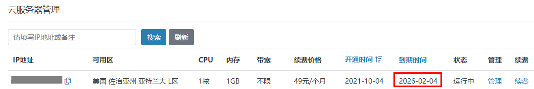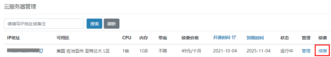 请到管理中心=》业务管理=》乐鱼全站app下载中,找到要续费的乐鱼全站app下载,并点击“续费”链接。